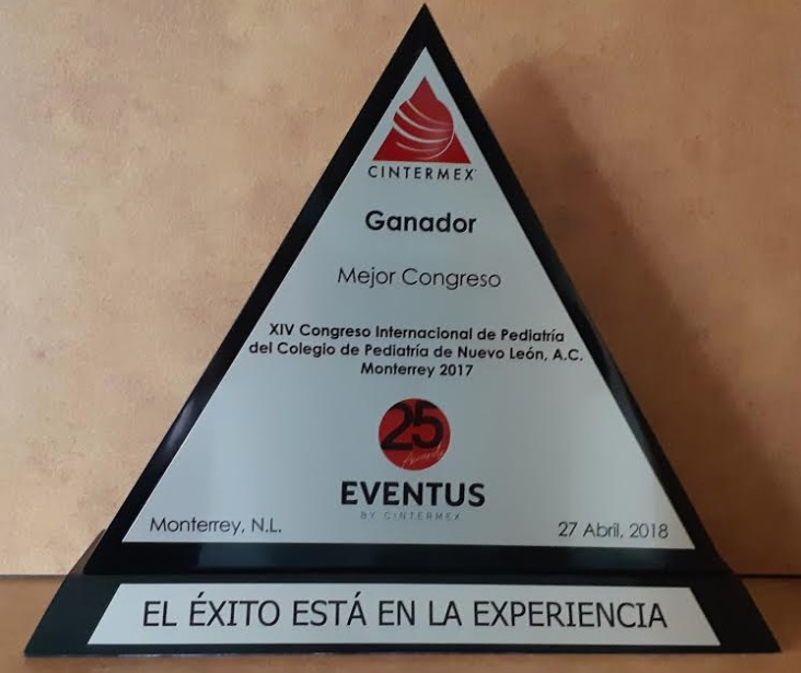 Les compartimos con orgullo el reconocimiento que el pasado 27 de Abril,recibió el Colegio de Pediatría de Nuevo León A.C. del Centro Internacional de Negocios (CINTERMEX) por la Organización y Realización del XIV Congreso Internacional de Pediatría “Monterrey 2017”, como El Mejor Congreso del 2017.
